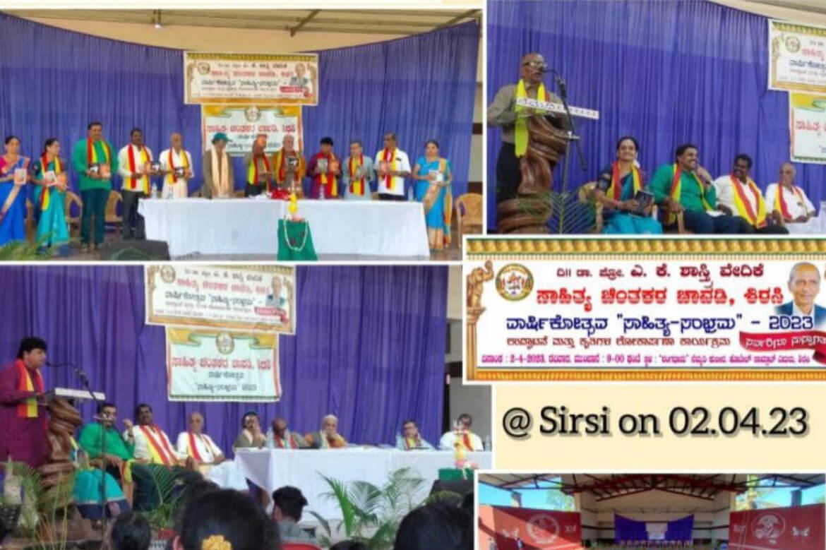 ಮೊನ್ನೆ ಭಾನುವಾರ 02.04.23 ರಂದು ಶಿರಸಿಯ ನೆಮ್ಮದಿ ಕುಟೀರದ ನೂತನ ರಂಗಧಾಮದಲ್ಲಿ, ಸಾಹಿತ್ಯ ಚಿಂತಕರ ಚಾವಡಿಯ ವಾರ್ಷಿಕೋತ್ಸವದ ಅಂಗವಾಗಿ ಆಯೋಜಿಸಿದ್ದ ವರ್ಣಮಯ ಸಾಹಿತ್ಯ-ಸಾಂಸ್ಕೃತಿಕ ಸಮಾರಂಭ ಹಲವು ಚಿರಸ್ಮರಣೀಯ ಕ್ಷಣಗಳಿಗೆ ಸಾಕ್ಷಿಯಾಯಿತು.