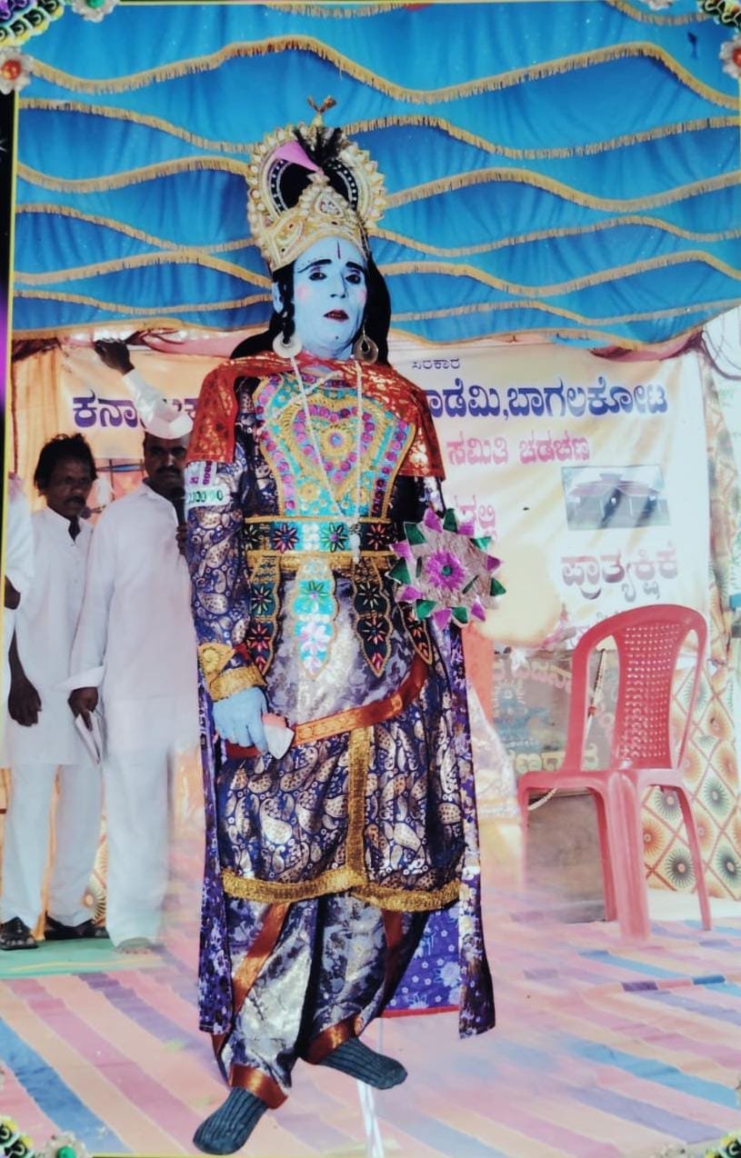 ಕಾಳಗದಲ್ಲಿ ಮಂಡೋದರಿಯ ಪಾತ್ರವನ್ನು ಧರ‍್ಮ ವಿಜಯದಲ್ಲಿ ಶ್ರೀ ಕೃಷ್ಣನ ಪಾತ್ರವನ್ನು ಅಭಿನಯಿಸಿ ಅದ್ಭುತ ಕಲಾವಿದ ನೆನೆಸಿಕೊಂಡಿದ್ದಾನೆ. ಇದೀಗ ೬೩ರ ಹೊಸ್ತಿಲಲ್ಲಿರುವ ಈತನು ಬಯಲಾಟ ಕಲೆಯ ಹಾಡುಗಾರಿಕೆ ಕುಣಿತ ಬಣ್ಣಗಾರಿಕೆ ವೇಷಭೂಷಣ ವಾದ್ಯಗಳ ಹೊಂದಾಣಿಕೆ ಈ ರೀತಿ ಎಲ್ಲಾ ಮಜಲುಗಳನ್ನು  ಬಲ್ಲವನಾಗಿದ್ದಾನೆ. ಬಡತನದಲ್ಲಿ ಬೆಳೆದು ಬಂದ ಈತನು ಸಾಮಾಜಿಕ ಕರ‍್ಯಗಳಲ್ಲಿಯೂ ಕೂಡ ಭಾಗಿಯಾಗುತ್ತಾ ಬಂದಿರುವನು.