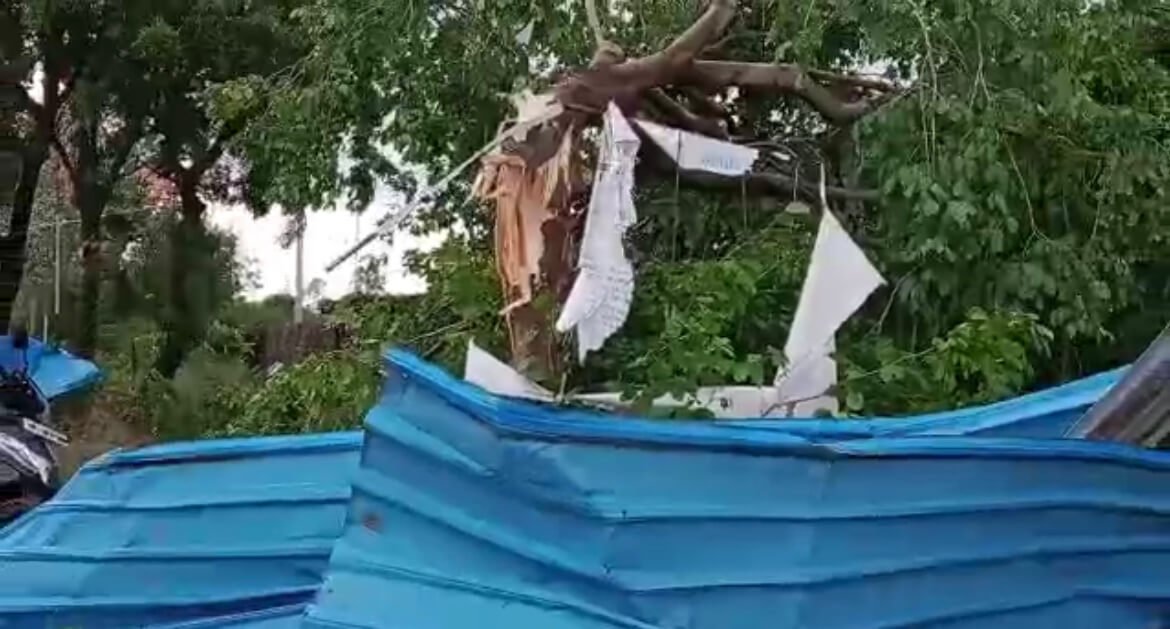 ಚರ್ಚ್ ಕಾಲೋನಿಯಲ್ಲಿ ಬೈಕ್ ಮೇಲೆ ಮರ ಉರುಳಿ ಬಿದ್ದಿದ್ದು ಹೊರತೆಗೆಯಲು ಸ್ಥಳೀಯರು ಹರಸಾಹಸ ಪಟ್ಟರು.