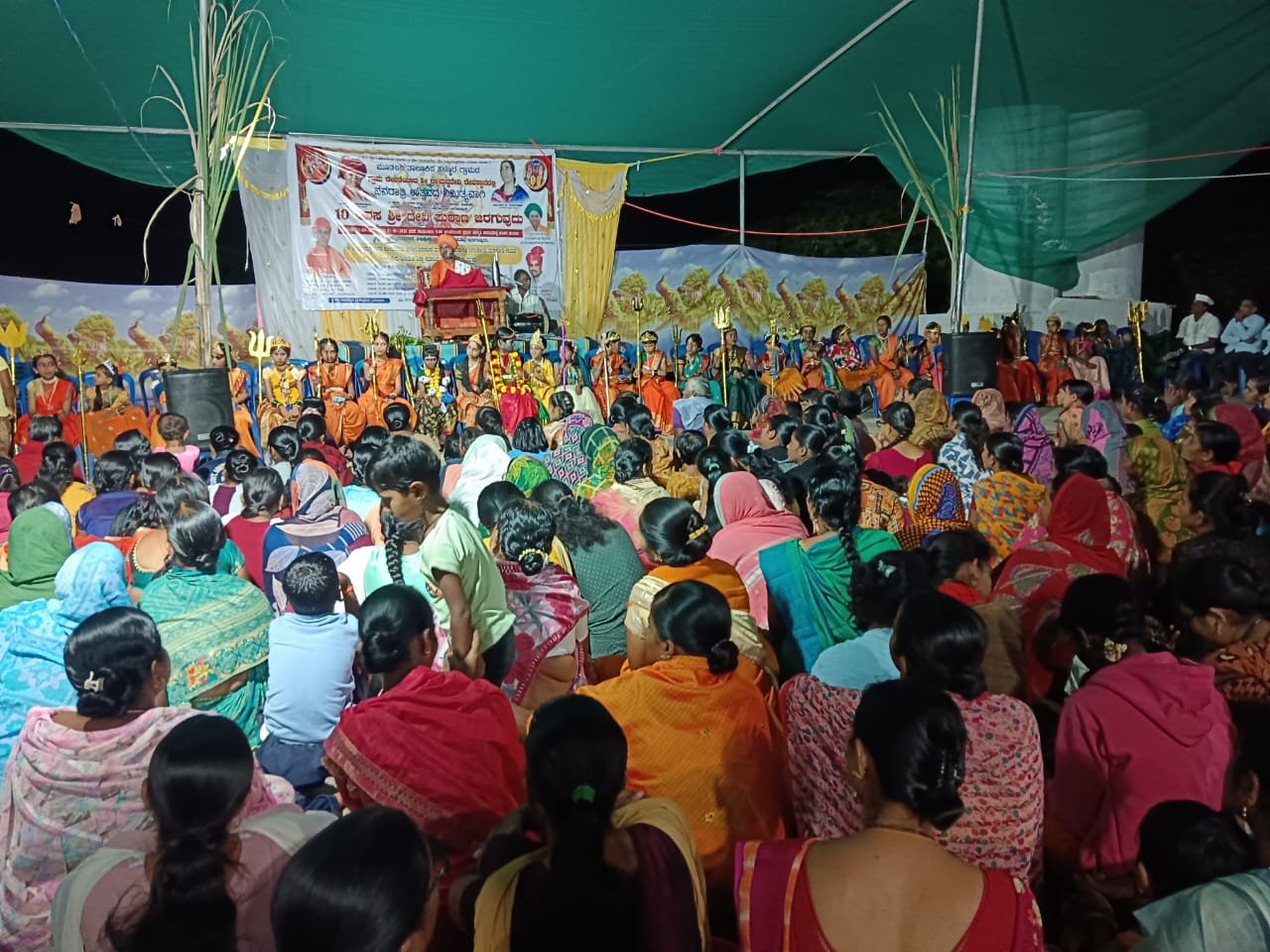 ಗ್ರಾಮದ ದ್ಯಾಮವ್ವಾ ದೇವಿ ದೇವಸ್ಥಾನದಲ್ಲಿ ನಡೆದ ನವರಾತ್ರಿ ಉತ್ಸವದ ಶ್ರೀ ದೇವಿ ಪುರಾಣ ಕಾರ್ಯಕ್ರಮದಲ್ಲಿ ರಾಕ್ಷಸರು ದೇವಿಯು ಮೇಲೇ ಯುದ್ಧ ಮಾಡಲು ಪ್ರಯತ್ನಿಸಿದಾಗ ದೇವೀ ಅಸ್ತ್ರ ಪ್ರಯೋಗಿಸಿ ದುಮ್ರಲೋಚನಂತ ದುಷ್ಟ ರಾಕ್ಷಸರನ್ನು ಸೆದೆ ಬಡಿದು ನಾಶ ಮಾಡುತ್ತಾರೆ. ಸಂಕಲ್ಪ ಶಕ್ತಿಯಿಂದ ಹಸಿವೂ ನೀಗಿಸುವ ಶಕ್ತಿ ಪಾರ್ವತಿ ಪರಮೇಶ್ವರನಲ್ಲಿದೆ ಒಳ್ಳೆಯದಕ್ಕೆ ಮಾತ್ರ ಪನ ತೊಡಬೇಕು ನುಡಿದರೆ ಮುತ್ತಿನ ಹಾರದಂತಿರಬೇಕು ನುಡಿದರೆ ಮಾಣಿಕ್ಯದ ದೀಪ್ತಿಯಂತಿರಬೇಕು ಒಳ್ಳೆಯದಕ್ಕೆ ಒಳ್ಳೆಯವರಿಗೆ ಪ್ರೋತ್ಸಾಹ ನೀಡಬೇಕು ದಾಸೋಹಕ್ಕೆ ಸಹಾಯ ನೀಡಬೇಕು. ಬಸವಣ್ಣವರು ಅನ್ನಕ್ಕೆ ಬ್ರಹ್ಮನ ಸ್ಥಾನ ನೀಡಿದ್ದಾರೆ ಇದ್ದಷ್ಟರಲ್ಲಿ ಹಂಚಿ ತಿನ್ನುವ ಆನಂದ ಇನ್ನೋದರಲಿಲ್ಲ. ಮತ್ತೊಬ್ಬರ ಏಳ್ಗೆಯನ್ನು ಸಹಿಸದವರು ರಾಕ್ಷಸ ಕುಲದವರು. ಒಳ್ಳೆಯವರಿಗೆ ಕಷ್ಟ ಕೊಟ್ಟವರ ಪರಿಸ್ಥಿತಿ ಅಧೋಗತಿ ಹೊಂದುತ್ತದೆ. ಸತ್ಯ ಧರ್ಮವಿದ್ದಕಡೆ ಜಯವಾಗಿ ದೇವರ ಆಶೀರ್ವಾದ ವಿರುತ್ತದೆ. ವಿದೇಶಿಗರು ನಮ್ಮ ದೇಶದ ಸಂಸ್ಕೃತಿಯನ್ನು ಪೂಜ್ಯನೀಯ ಭಾವನೆಯಿಂದ ಕಾಣುತ್ತಾರೆ .ಮಹಿಳೆಯರು ಶ್ರೇಷ್ಠವಾದ ದೇಶದ ಸಂಸ್ಕೃತಿಯನ್ನು ಉಳಿಸಿಕೊಂಡು ಹೋಗಬೇಕೆಂದು ಹೇಳಿದರು.
