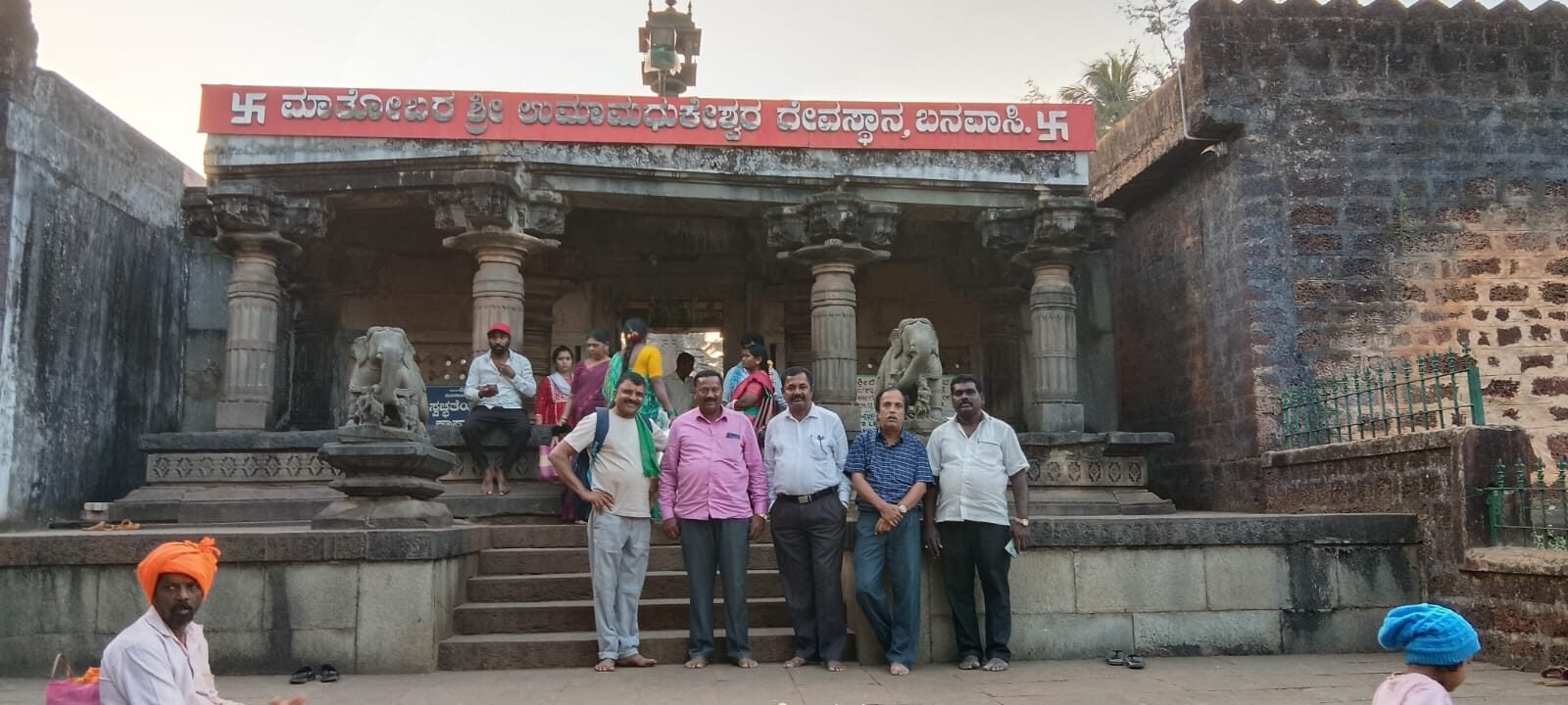 ನಾವು ಶಿರಸಿಯಿಂದ ಬನವಾಸಿ ಬಸ್ಸು ಹತ್ತಿದಾಗಲೇ ನಾಲ್ಕೂವರೆ ಆಗಿತ್ತು. ಶಾಲೆ ಬಿಡುವ ವೇಳೆ ಬಸ್ ರಷ್ ಆಗಿತ್ತು. ಬನವಾಸಿಯಲ್ಲಿ ಇಳಿದಾಗ ಐದೂವರೆ ಆಗಿತ್ತು. ಕ್ಯಾಂಟಿನ್‌ನಲ್ಲಿ ಟೀ ಕುಡಿದು ಮೈಂಡ್ ಪ್ರೆಶ್ ಆಯಿತು. ಅಲ್ಲಿ ದೇವಾಲಯದ ದಾರಿ ಕೇಳಲು ನೀವು ಆಟೋದಲ್ಲಿ ಹೋಗಿ ಆರೂವರೆಗೆ ದೇವಸ್ಥಾನದ ಬಳಿಗೆಯೇ ಬಸ್ ಬರುತ್ತದೆ ಅಲ್ಲಿ ವಾಪಸ್ಸು ಹತ್ತಬಹುದು ಎಂದರು. ಎರಡು ಆಟೋದಲ್ಲಿ ಮಧುಕೇಶ್ವರ ದೇವಸ್ಥಾನಕ್ಕೆ ಹೋದೆವು. ದೇವಸ್ಥಾನದ ಪ್ರವೇಶದ್ವಾರದಲ್ಲಿ ನಾವು ಐವರು ಎ.ಹೆಚ್.ಗಣೇಶ್, ಪುಟ್ಟಸ್ವಾಮಿಗೌಡರು, ಬೇಕ್ರೀ ರಾಜೇಗೌಡರು, ಪಟ್ನ ವೆಂಕಟೇಗೌಡರು ಪೋಟೋ ತೆಗೆಸಿಕೊಂಡವು. ಅರ್ಚಕರು ನಿಮಗೆ ಗೈಡ್ ಬೇಕೆ ಎಂದರು. ಹೌದೆಂದು ಅವರಿಂದ ಅನೇಕ ಐತಿಹಾಸಿಕ ಮಾಹಿತಿ ಪಡೆದೆವು.