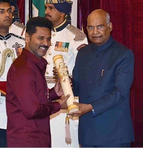 11 ಮಾರ್ಚ್ 2019 ರಂದು ನವದೆಹಲಿಯ ರಾಷ್ಟ್ರಪತಿ ಭವನದಲ್ಲಿ ನಡೆದ ಹೂಡಿಕೆ ಸಮಾರಂಭದಲ್ಲಿ ರಾಷ್ಟ್ರಪತಿ ರಾಮನಾಥ್ ಕೋವಿಂದ್ ಅವರು ಪ್ರಭುದೇವ ಅವರಿಗೆ ಪದ್ಮಶ್ರೀ ಪ್ರಶಸ್ತಿಯನ್ನು ಪ್ರದಾನ ಮಾಡಿದರು.