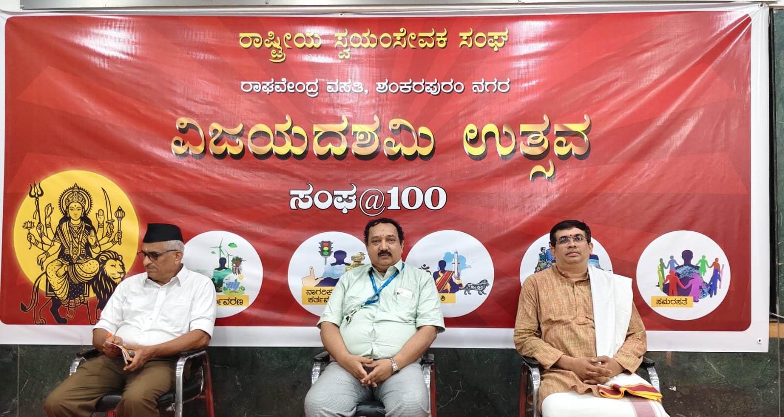 ಬೆಂಗಳೂರು ಶಂಕರಪುರಂ ನಗರದ ರಾಘವೇಂದ್ರ ವಸತಿ ವತಿಯಿಂದ ಚಾಮರಾಜಪೇಟೆಯ ಆದರ್ಶ ಕಾಲೇಜಿನಲ್ಲಿ  ಆಯೋಜಿಸಿದ್ದ ವಿಜಯದಶಮಿ ಉತ್ಸವದಲ್ಲಿ ಮುಖ್ಯ ಅತಿಥಿಗಳಾಗಿ ಭಾಗವಹಿಸಿ ಮಾತನಾಡಿದರು.
