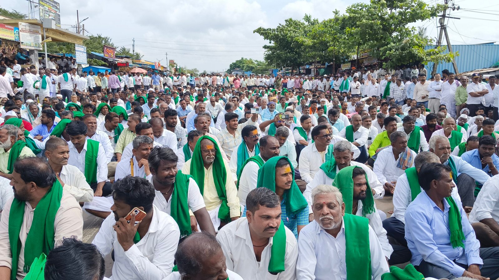 ಸಾವಿರಾರು ರೈತರು ವಿವಿಧ ಭಾಗಗಳಿಂದ ಆಗಮಿಸಿ ಪ್ರತಿಭಟನೆಯಲ್ಲಿ ಪಾಲ್ಗೊಂಡರು. ಜೈ ಜವಾನ್ ಜೈ ಕಿಸಾನ್ ಎಂಬ ಘೋಷಣೆಗಳೊಂದಿಗೆ ಅನ್ನದಾತರು ನಡು ರಸ್ತೆಯಲ್ಲಿ ಕುಳಿತು ತಮ್ಮ ಉತ್ಪನ್ನಕ್ಕೆ ದರ ನೀಡಬೇಕೆಂದು ಆಗ್ರಹಿಸಬೇಕಾಯಿತು.