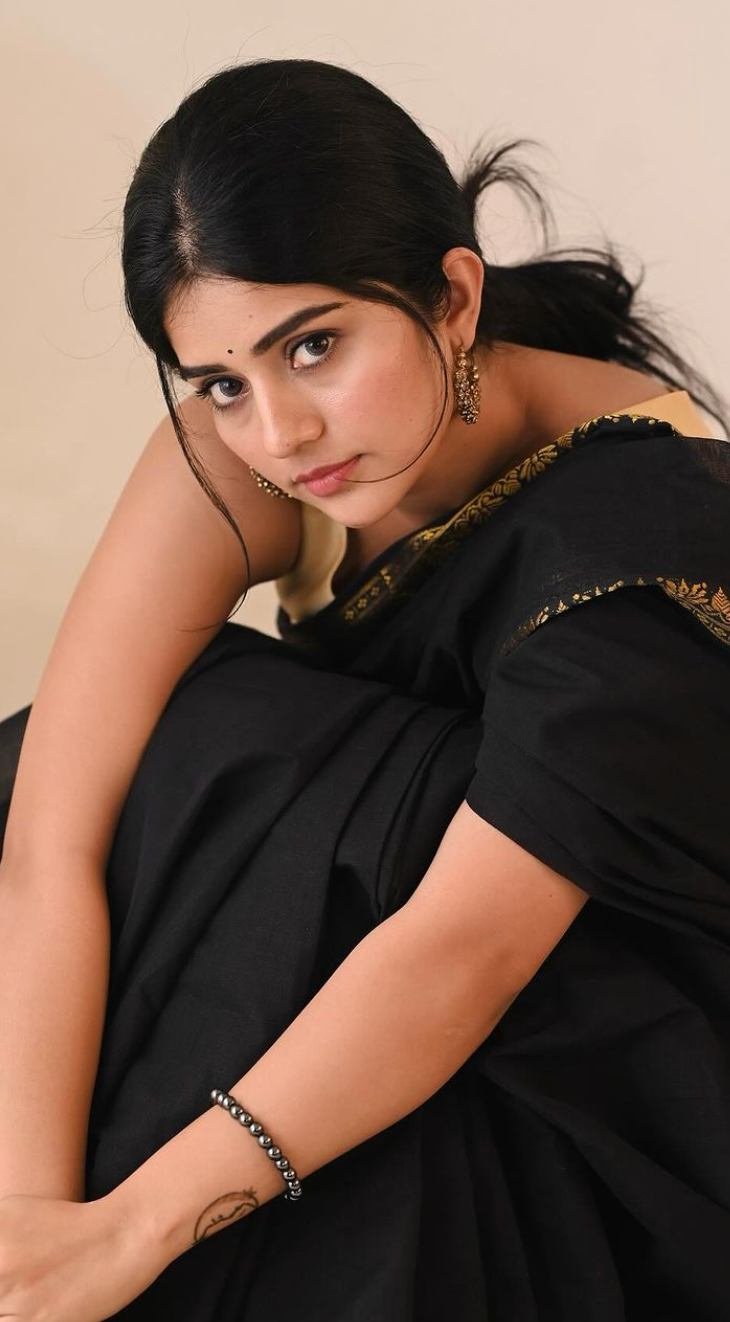 ನೀಲಿ ನೀರಿನಂತೆ ಕಂಗೊಳಿಸುವ ಕಪ್ಪು ಸೀರೆಯುಡುಗೆಯಲ್ಲಿ ಮೆಘಾ ಶೆಟ್ಟಿ, ಚಂದಿರನ ಬೆಳಕಿನಂತೆ ಮಿನುಗುತ್ತಾಳೆ