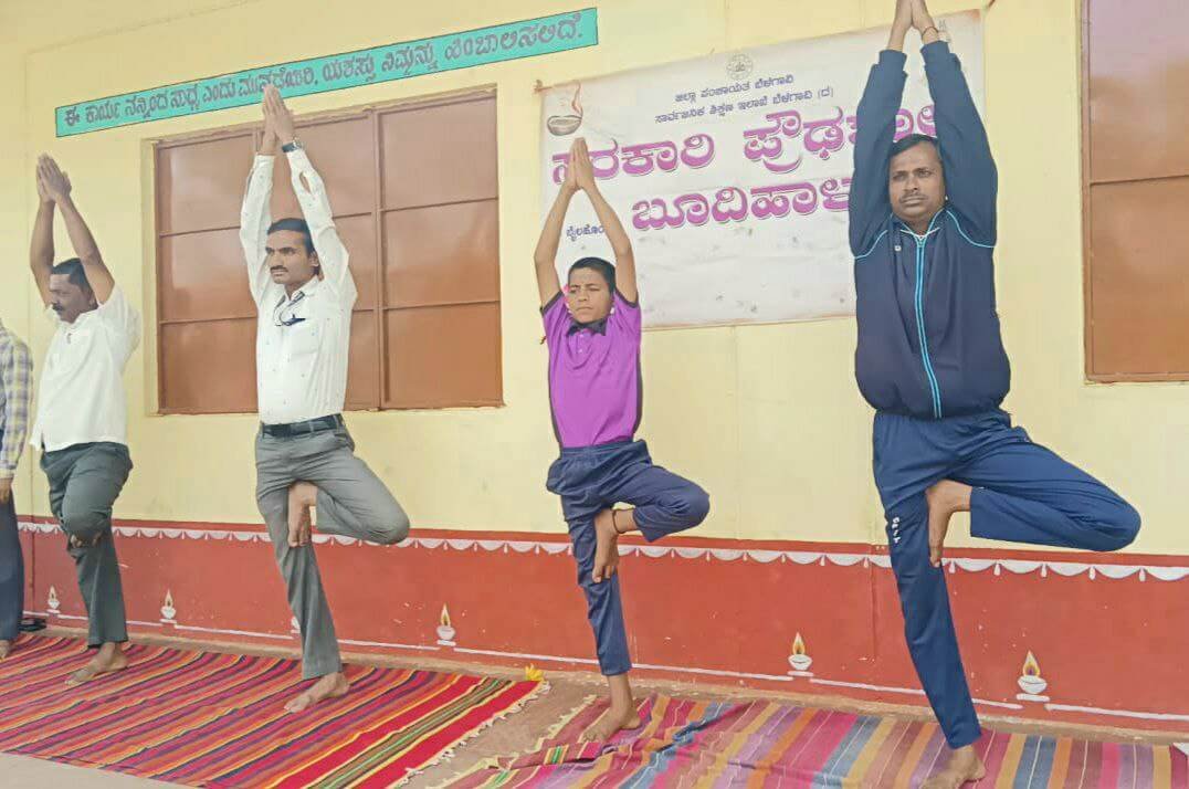 ಬೈಲಹೊಂಗಲ: ತಾಲೂಕಿನ ಬೂದಿಹಾಳ ಗ್ರಾಮದ ಸರಕಾರಿ ಪ್ರೌಢಶಾಲೆಯಲ್ಲಿ ವಿಶ್ವಯೋಗ ದಿನ ಆಚರಿಸಲಾಯಿತು. ಪ್ರತಿನಿತ್ಯ ಯೋಗ ಮಾಡುವುದರಿಂದ ಉತ್ತಮ ಆರೋಗ್ಯ ಪಡೆಯಬಹುದು ಎಂದು ಮುಖ್ಯಶಿಕ್ಷಕರಾದ ಎನ್.ಆರ್.ಠಕ್ಕಾಯಿ ಹೇಳಿದರು. ವಿದ್ಯಾರ್ಥಿಗಳಿಗೆ ಏಕಾಗ್ರತೆ ಸಾಧಿಸಲು ಯೋಗ ಸಹಾಯ ಮಾಡುತ್ತದೆ ಎಂದು ಅವರು ಅಭಿಪ್ರಾಯಪಟ್ಟರು.